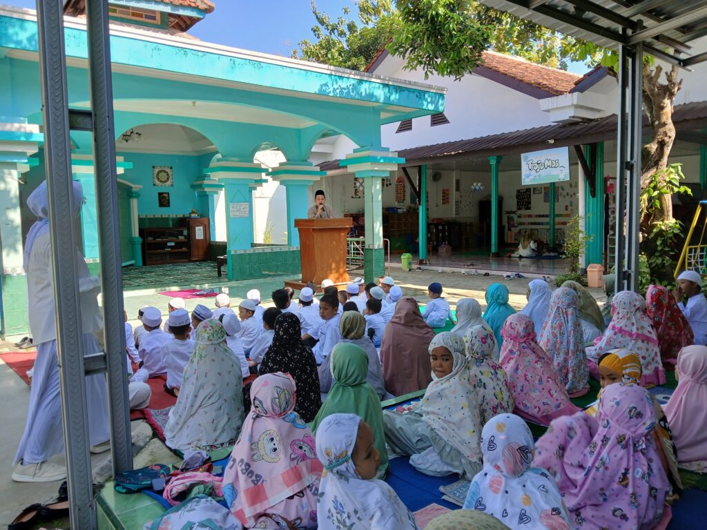 Kegiatan Sekolah Ramadhan ditutup dengan Simulasi Sholat Idul Fitri, di mana anak-anak belajar tata cara sholat id dan mendengarkan khotbah yang disampaikan oleh Bapak Arista Nur Rizki. Acara diakhiri dengan salam-salaman dan bermaaf-maafan, menciptakan suasana yang hangat dan penuh kasih.